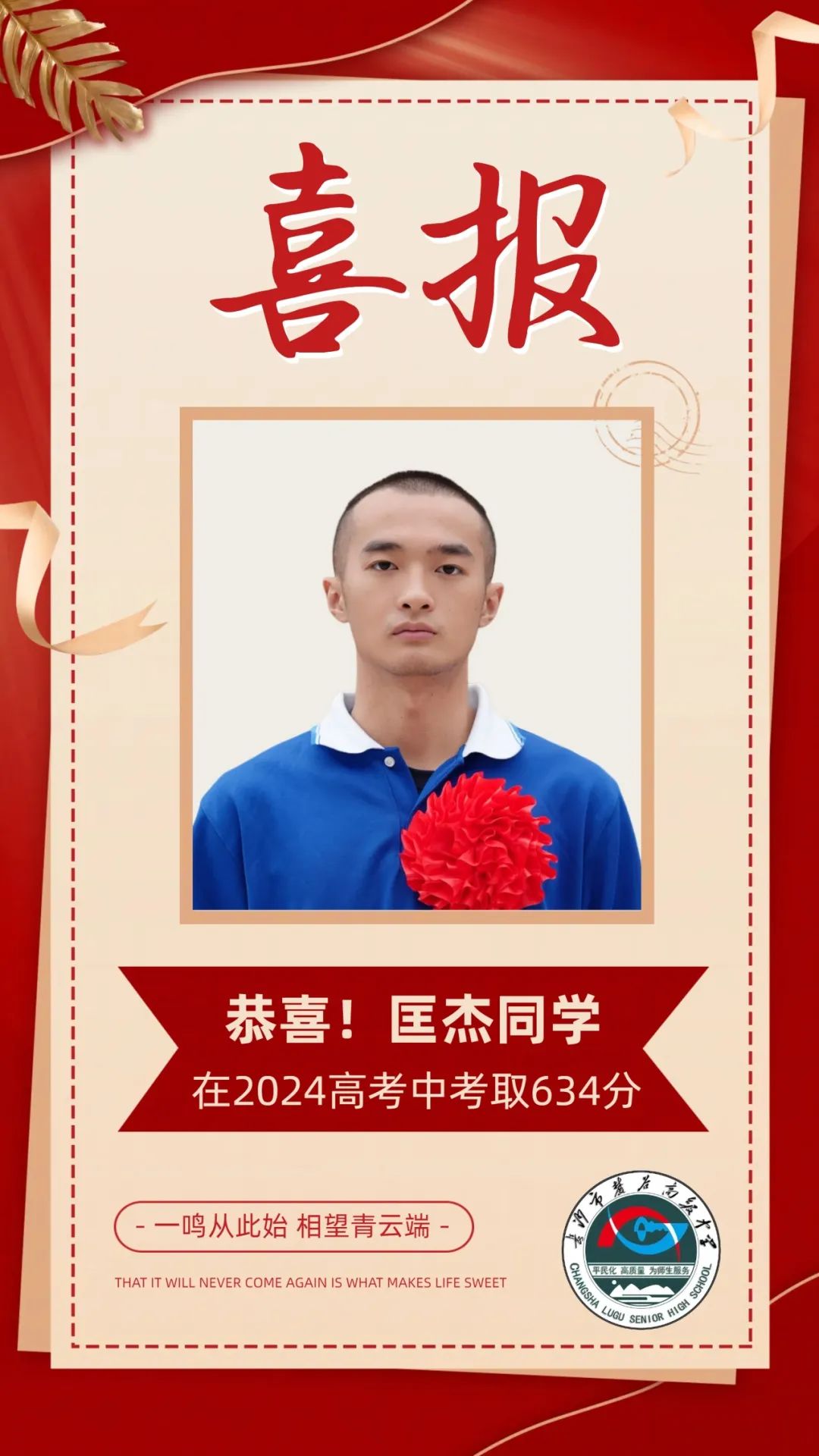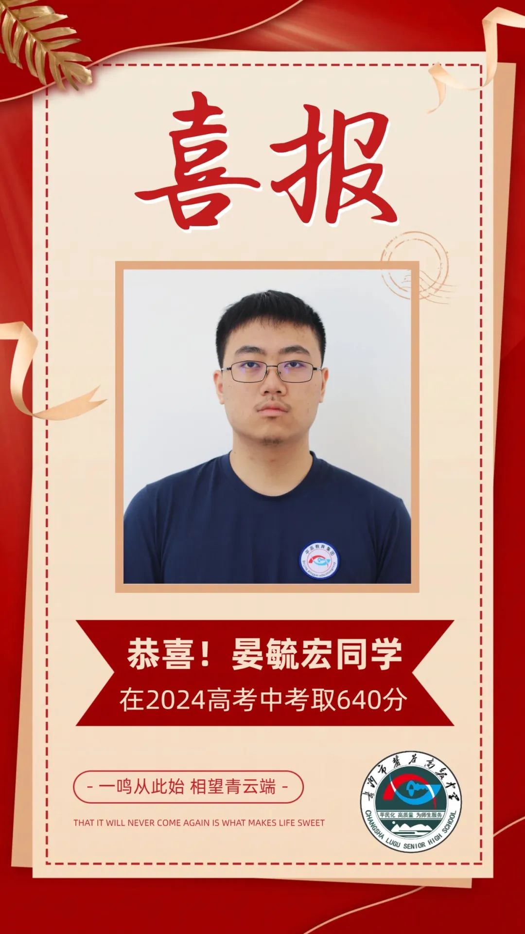 2024年长沙市麓谷高级中学高复捷报频传,再次创造提分奇迹,人均提分近90分,其中谭鸿裕提分216分,王豪提分206分,实现了“低进高出,高进优出”的复读目标。
