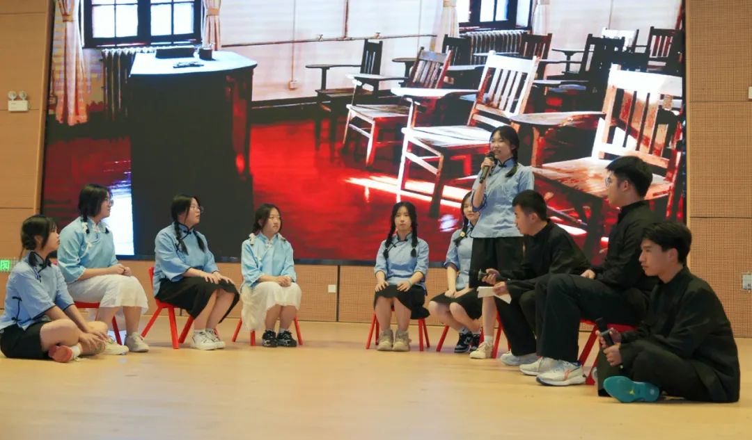 “缱绻儿女情,千秋家国义”,高一(2304)(2307)班对林觉民烈士的那封家信演绎得情真意切,在现实与历史的时空交错中感受林觉民那伟大的家国情怀。演员们身穿民国服饰款步登上舞台,深情演绎了那段波澜壮阔的历史。他们用精湛的演技和深情的表演将林觉民的英勇事迹和家国情怀展现得淋漓尽致,让观众仿佛穿越了时空,亲身感受到了那个充满硝烟且又热血的时代。