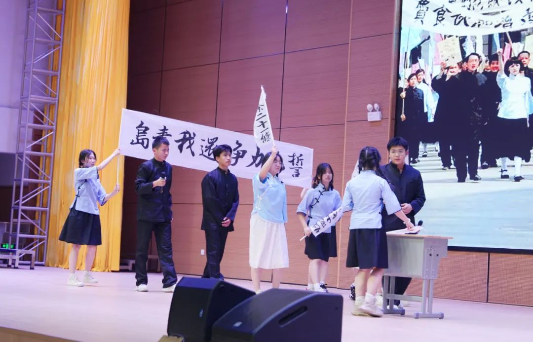 狂澜力挽精英梦,还我河山壮此行。青年当有“上青天、揽明月的志向”,也应有“挥斥方遒、指点江山”的意气,更该有“十年饮冰、难凉热血”的毅力,岁月不老,青春不朽。回望过去峥嵘岁月,展望未来幸福生活。传承五四精神,吾辈当自强。2305班的《五四运动》,重现了近代中国历史上这一重要事件,学生们通过戏剧化的表演,传递了爱国情怀与民主科学的精神。
